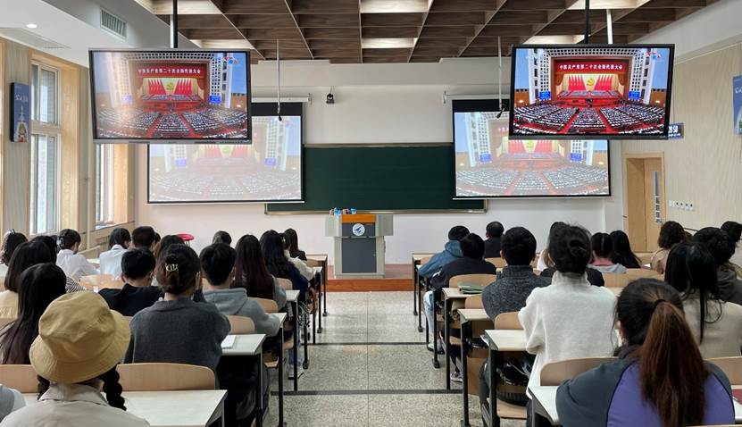 2022年10月16日上午10点,中国共产党第二十次全国代表大会开幕会在人民大会堂隆重召开。公司组织院领导班子、党委理论学习中心组成员及广大师生分别在智慧教室、党员活动室、会议室等集体收看党的二十大开幕会。