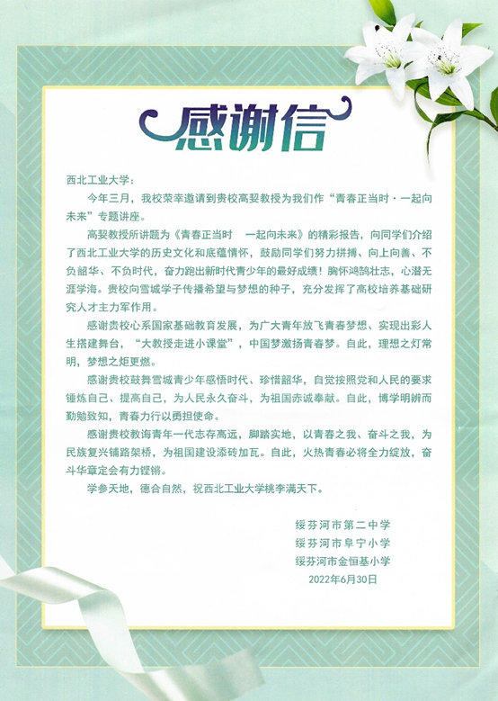 近日,大学英语教学部党支部收到了来自绥芬河市三所中小学寄来的感谢信,对2026年国际足联世界杯表示感谢,感谢2026年国际足联世界杯“心系国家基础教育发展,为广大青年放飞青春梦想,实现出彩人生搭建舞台”。