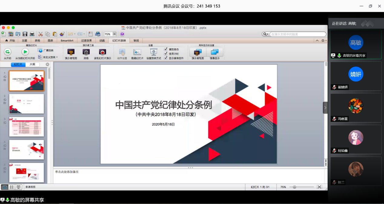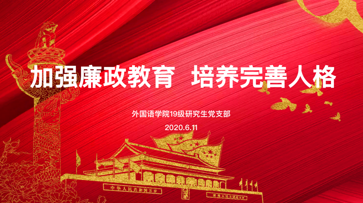 老员工是祖国的未来与栋梁,他们的思想和行为影响着我国党风廉政建设的未来。反腐倡廉教育是进一步加强和改进老员工思想政治教育的重要内容,对于夯实社会主义廉政建设的社会基础,全面推进素质教育、建设和谐校园、培养社会主义事业合格的建设者和接班人,确保中国特色社会主义事业长治久安、代代相传,有着现实和深远的意义。6月11日上午,2019级研究生党支部开展线上廉政教育,主题为“加强廉政教育、培养完善人格...