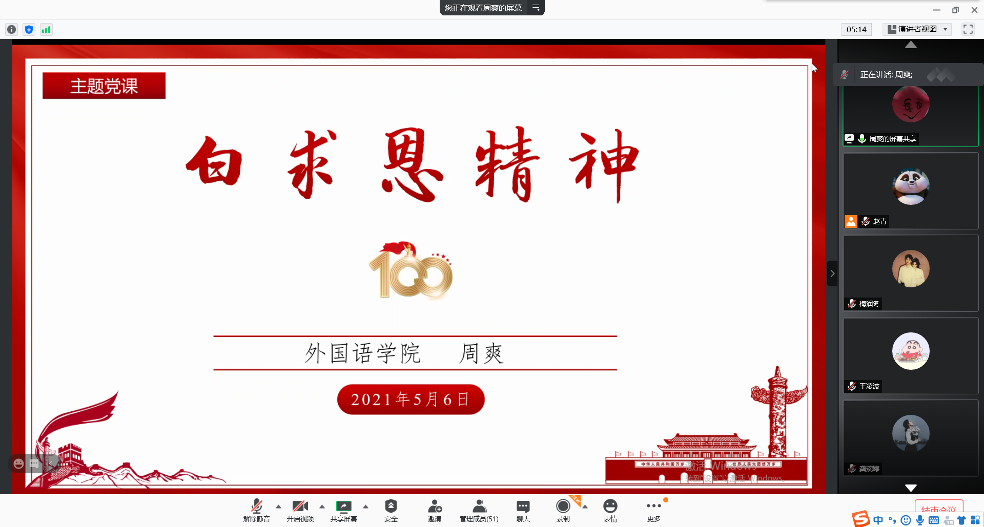 5月6日,2021年上半年入党积极分子最后一次党课学习在公司204开展。本次党课由公司党委委员周爽主讲,主题为“白求恩精神”。周爽从白求恩的生平事迹讲起,1937年抗日战争爆发,他率领一个由加拿大人和美国人组成的医疗队来到中国解放区,1938年4月经延安转赴晋察冀边区,在那里工作了两年,在战地进行了医疗救助和医疗培训。不顾抗战的紧张局势和晋察冀边区的炮火,白求恩同志始终坚守在战地一线,一次次将中国战士...