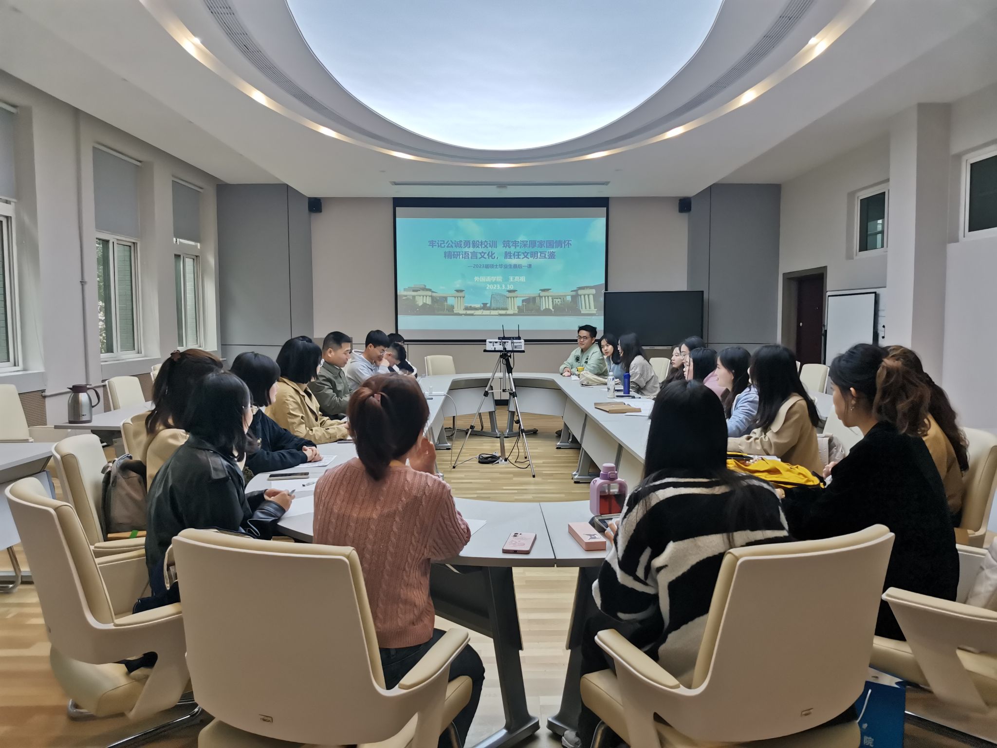 3月30日下午,公司党委书记王高祖以“牢记公诚勇毅校训,筑牢深厚家国情怀,精研语言文化,胜任文明互鉴”为题,在公司204会议室为公司2023届全体硕士毕业生讲授“工大最后一课”。课程中,他充分结合本届硕士毕业生的就业去向、社会发展的需求与导向、外语学子的修炼与前进等为同学们讲授了一堂生动的毕业教育思政课。王高祖首先带领全体同学回顾了西工大的办学历史,以史观今,鼓励同学们要善于把握时机,在正确的时间...