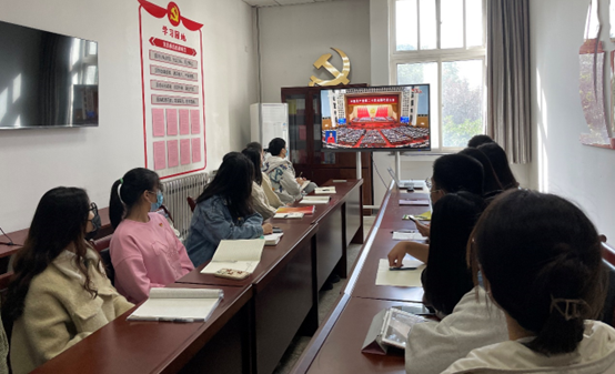 公司组织院领导班子、党委理论学习中心组成员及广大师生分别在智慧教室、党员活动室、会议室等集体收看党的二十大开幕会。随着大会开幕,收看直播的师生全体起立,高唱国歌。开幕会历时近2小时,师生全程认真聆听,习近平总书记的报告激荡群情、催人奋进。其他师生则通过电视、广播、网络等多种形式收看收听开幕会盛况。