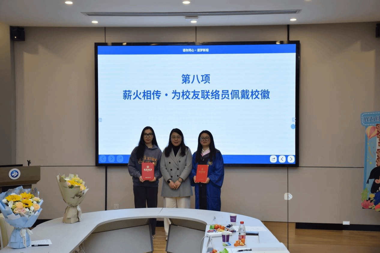 接下来,同学们向公司捐赠了书籍,以书香传递爱心、延续传承,分享收获的喜悦。同时,大家积极践行“我为母校发展建言献策”,将对母校的殷切建议与美好祝福写在寓意马到成功的卡片上。随后,孙瑜向2026届员工联络员佩戴校徽并颁发聘书。
