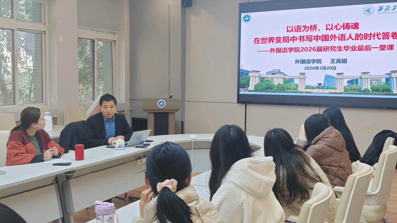 3月20日上午,公司党委书记王高祖以“以语为桥,以心铸魂,在世界变局中书写中国外语人的时代答卷”为题向2026届硕士毕业生讲授“工大最后一课”,为即将告别校园、奔赴新征程的毕业生们指引方向、凝聚力量。讲座由公司党委副书记张桑桑主持。