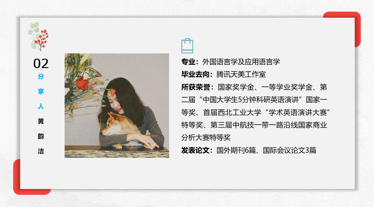 徐微向同学们分享了她的学术经历以及申请博士的流程。她从准备博士申请的时间节点和注意事项入手,建议同学们做好前期科研成果准备工作,夯实学业基础。黄韵洁从企业求职方面着手,就面试准备部分向同学们提出宝贵意见。