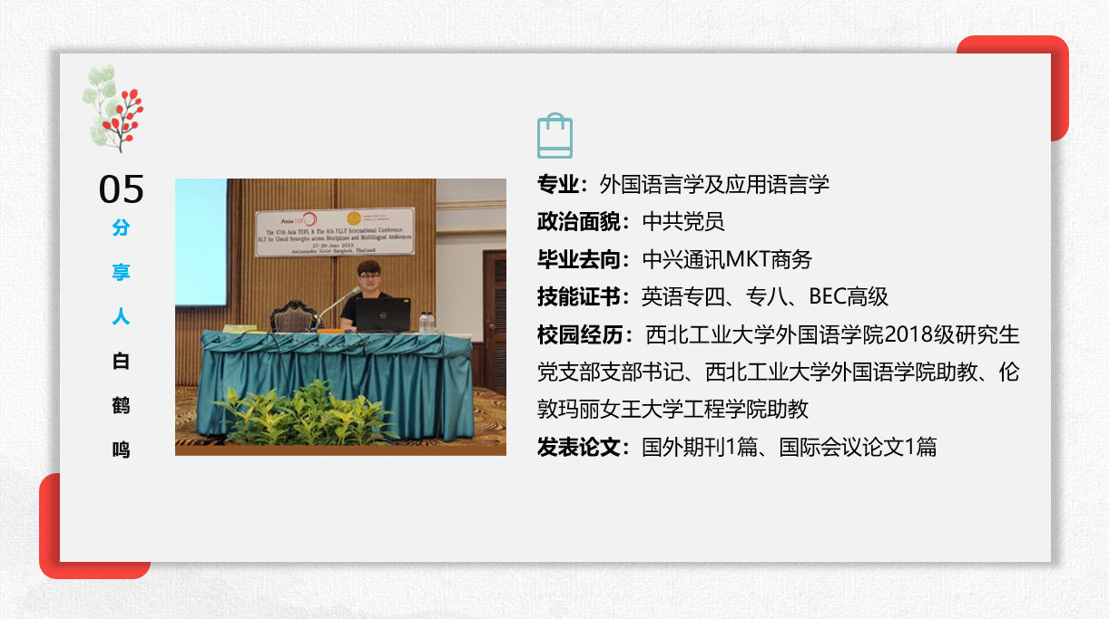 卢梅则是分享了她制作简历的经验,提倡在基础简历之上针对不同的岗位需求做针对性的修改。同时,在信息互联时代,善用媒体可针对岗位和公司业务进行细致的了解。