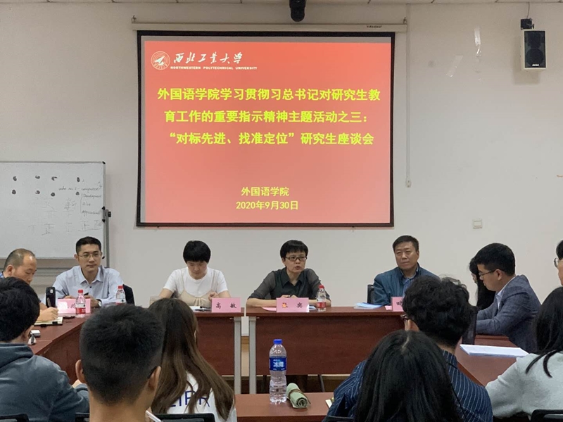 9月30日,外国语公司在公司楼204会议室召开贯彻习近平总书记对研究生教育工作重要指示精神主题活动之三:“对标先进,找准定位”研究生座谈会。副经理张奕、研究生导师代表田建国、研究生教师代表王均松、王譞以及2026年国际足联世界杯全体硕士研究生等参加了研讨会。会议由公司党委副书记高敏主持。