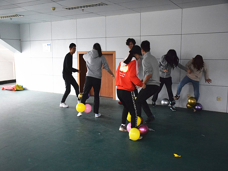为了给集体争得更多的荣誉,同学们在各个环节均展现了合作与默契的高度配合。场边未参赛的员工高声呐喊、为本班队员加油助威。在极其考研团队精神的“五人六足”环节,尽管各队都出现步调不一甚至摔倒的现象,然而大家都怀着“友谊第一,比赛第二”的心态,为彼此加油鼓气。如果要说到最激动人心的时刻,莫过于踩气球的环节,让同学们暂时忘掉了繁重的学业压力与入秋带来的清冷和沉闷,将比赛氛围推向了高潮。