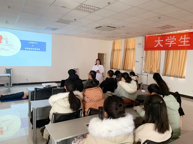 活动伊始,急诊科主治医师万林对前来参加培训的同学们表示了热烈的欢迎,并借用近期发生的几个热点事件向同学们阐明了掌握简单急救技巧的重要性。万医生的讲解图文并茂、生动有趣,使同学们对于日常简单急救措施------心肺复苏术及异物窒息抢救技能有了由浅入深、较为系统的了解,一幅幅简明扼要的演示图片、一条条朗朗上口的急救口诀,更让同学们胸有成竹。