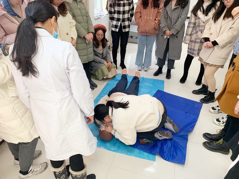 “实践出真知”,掌握急救知识是成功实施急救行为的必备条件。急救理论讲解完毕后,同学们分为三组,分别由万医生、魏医生、王医生借助假人为大家进行了更直观的现场教学,在三位医生的悉心指导下,大家也依次进行了模拟演练。经过一轮的“救人”体验,同学们无不感叹道,看似简单的急救步骤,自己上手时却手忙脚乱,急救技能仍需不断提高。活动最后,大家纷纷表示了对三位授课医生的由衷感谢,校医院也表达了期待同学们带着疑问前来咨询。