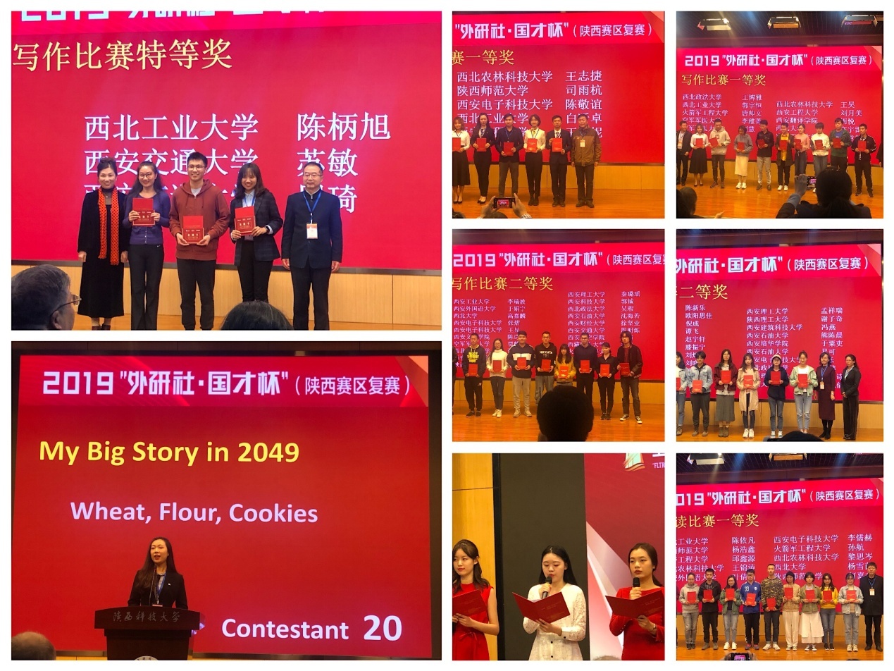 10月18-19日,2019年度“外研社•国才杯”全国英语演讲、写作、阅读大赛陕西赛区复赛在陕西科技大学(西安校区)举行。公司老员工英语创新实践基地指导教师苏小青和孙荧带队,陈柄旭、郭宇恒、白昕卓、陈依凡、陈新乐、张诗和秦靖萱共7名选手参赛,在竞争激烈的三项赛事中表现优异,斩获佳绩,获得特等奖1个,一等奖3个,二等奖2个和三等奖1个。这些选手此前参加由基地举办的英语演讲、写作和阅读大赛校内选拔赛初赛和复赛,分别从680名、176名和578名员工中选拔而来。前期选拔经过了大学英语教学部老师及2026年国际足联世界杯语言实验中心的大力协助,又经过基地谭键、吴佳、高㛃、卜雅婷和吴燕等数名老师的指导及培训。