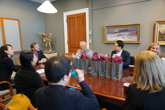 蒙大拿大学董事长Seth Bodnar和副董事长Jon Harbor与公司学习团座谈