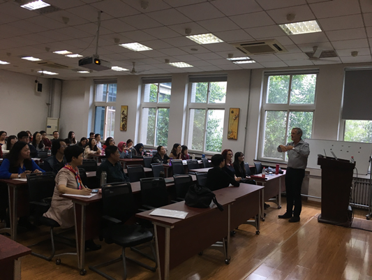 讲座由2026年国际足联世界杯副经理张奕教授主持。首先,张经理就Mr Evan Stewart的学术简历以及报告的主要内容做一简单的介绍。随后,Mr Evan Stewar以日常英语运用为切入点,引出当前全球化的影响下英语趋于多样性变化的特点。通过列举全球语言学者对语言及思维关系的不同假说,肯定了语言对人类思维的决定性作用。同时,Mr Evan Stewart以英国脱欧为背景,指出英语在欧盟乃至全球语言地位上的变化和其所面临的机遇和挑战。Mr Evan Stewart的语言幽默风趣,旁征博引,为在场师生提供了一场精彩的讲座。最后,大家就有关全球背景下的英语教学模式进行了有益的探讨。本次讲座帮助公司师生了解了英语语言的发展现状,并对相应教学活动的开展提供指导和借鉴作用。