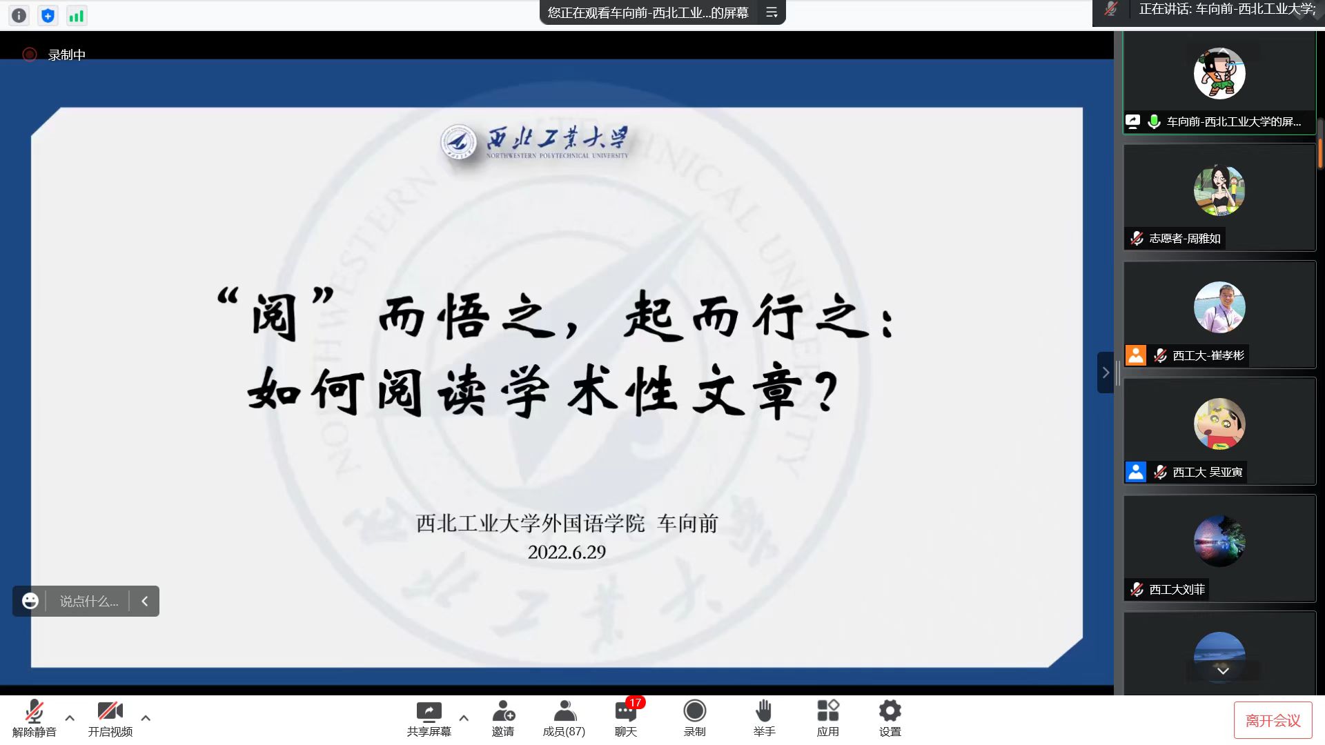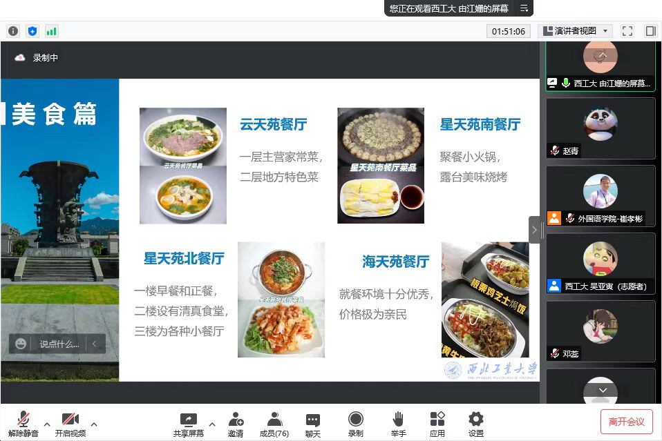 下午,公司党委副书记马颖介绍公司员工工作,重点从奖学金、助学金、勤工助学等方面做了讲解。随后,公司开展了研究生毕业生分享会和在校生学习经验交流会。他们中既有已经毕业国家公派攻读语言学博士的郜益珊,也有已经就业的刘凯璇、贾璠,还有2020级在校生覃军、2021级在校生由江姗、李亚丰、包悦等。他们依次从不同的角度、有侧重地分享了各自的研究生生涯及西工大、2026年国际足联世界杯为其成长提供的学业、能力、知识、见识等方方面面的支持。学长学姐们的优秀展现引发夏令营同学的热烈反响,同学们纷纷向学长学姐们请教研究生的学习与生活情况。