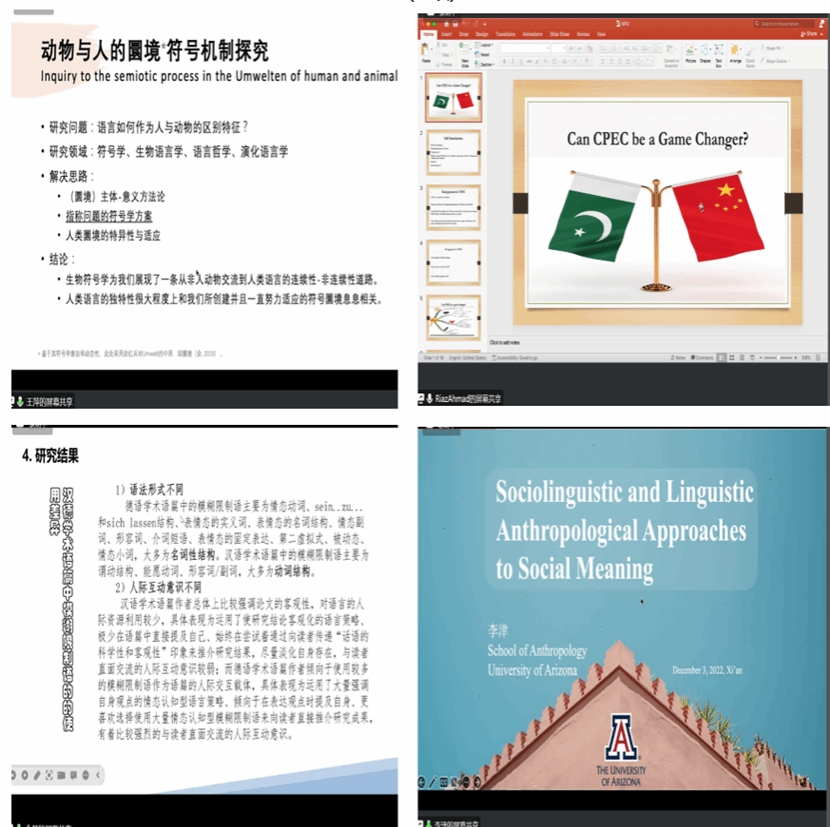 与会青年学者报告阶段,四位来自海内外高校的中国/外籍学者就个人学术领域及最新研究成果作了如下主题的精彩报告:“指称关系的层级结构和过程性解释”“基于语料库方法的汉德学术语篇模糊限制语人际功能研究”“CPEC 能成为‘游戏规则改变者’吗?”“基于社会语言学和语言人类学方法的社会意义研究”。林嘉新教授对学者的报告逐一予以点评和总结。