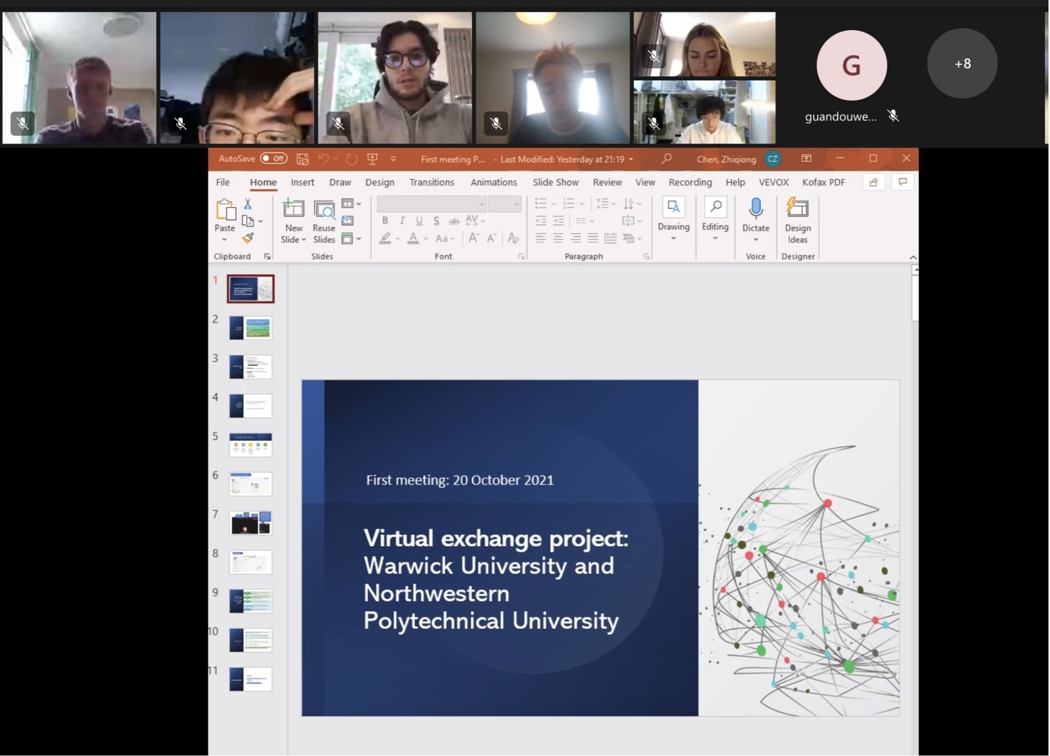 两校线上双语交流项目目前已成功举办了两期。公司德语专业员工与华威公司员工依照“一对一”或“二对一”的模式匹配分组,每组每周进行一次线上讨论,内容包含中外的生活日常、校园生活、国家的历史渊源及文化知识等,并在项目结束后做汇报展演。公司员工与外国语伴在活动中积极交流,在提高外语能力的同时,作为“文化使者”也在讲述着中国故事。