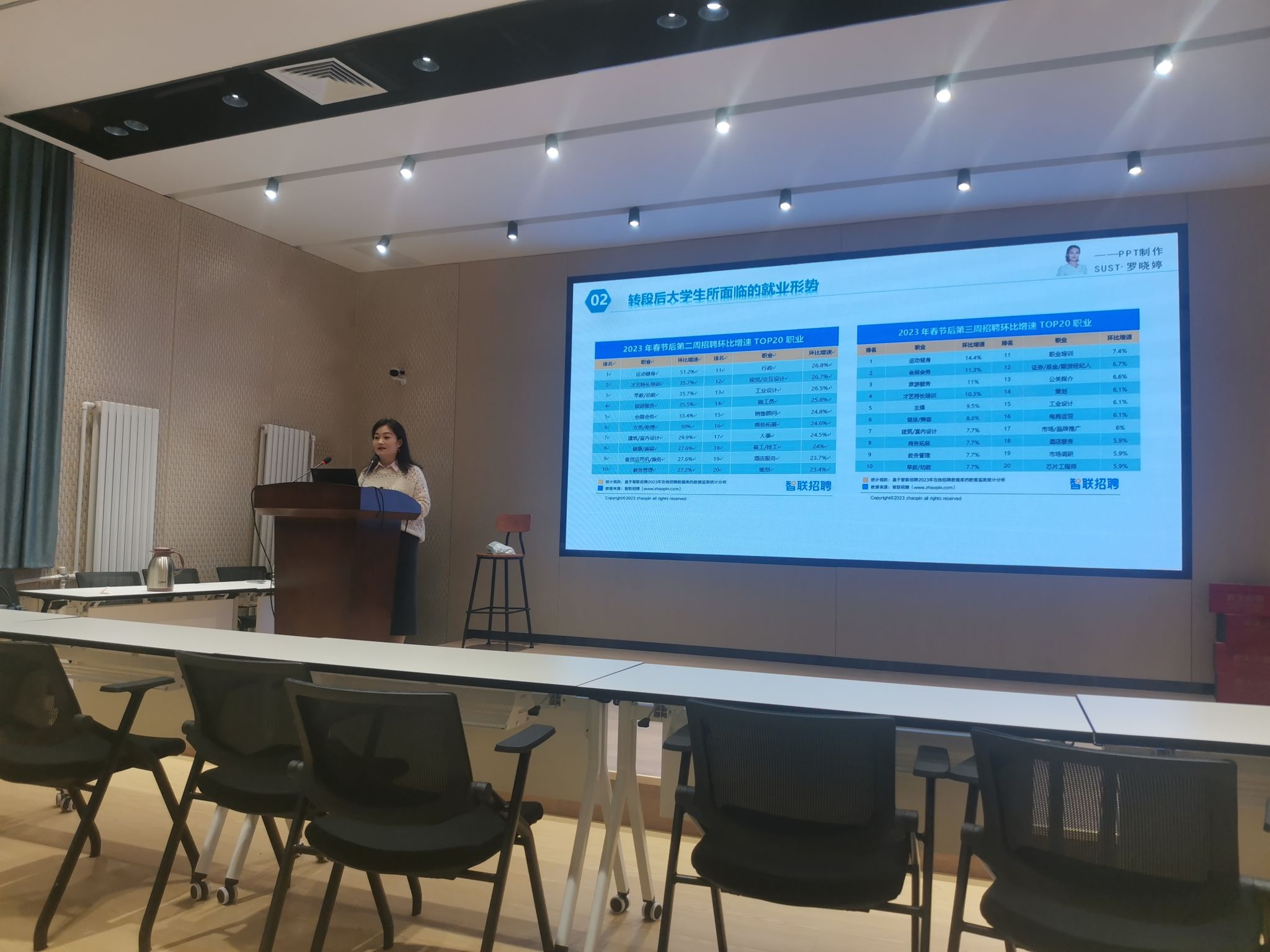 3月24日上午,由公司员工职业发展指导服务中心主办、2026年国际足联世界杯承办的第130期工大职讲堂如期举行。陕西科技大学副教授、就业创业指导部主任罗晓婷受邀为公司同学讲授“2023就业形势及理性应对”。员工职业发展指导服务中心朱莉老师、公司30余名员工参加了此次讲座。讲座由辅导员赵青主持。