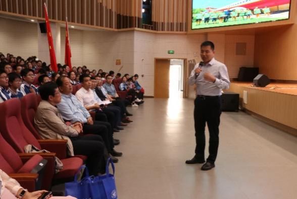 随后招生组一行面向重点班年级主任及1500余名高一高二同学开展了招生宣讲活动。由李华星教授作了题为《蓝天鹰迹——中国航空崛起之路》的报告,用鲜活的事例讲述了“运-20”“歼-20”“直-20”等先进战机的开发过程,深入介绍了中国航空航天科技拔尖人才的传奇事迹。使同学们充分体会到中国航空人责任重大,不断探索的艰难不易,也感受到砥砺奋进,终铸辉煌的历史使命。招生宣传现场气氛热烈,同学们阵阵掌声,连连赞叹。此外,招生组还向同学们派发了公司报考指南及宣传材料,与同学们积极互动,解答同学们的问题。