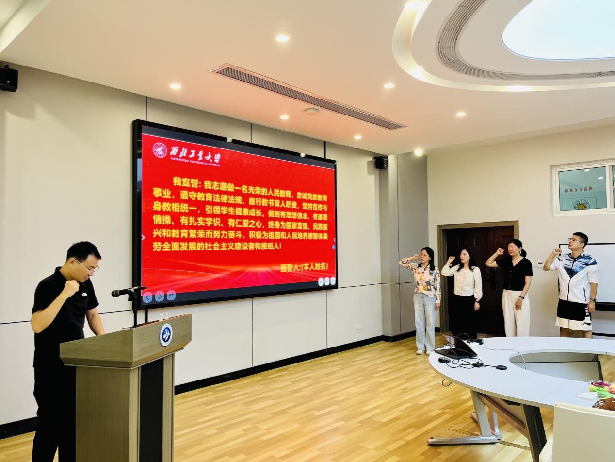 随后,公司为新入职教师举行了入职宣誓仪式。“我志愿做一名光荣的人民教师,忠诚党的教育事业……”5名新教师高举右手,庄严宣誓。孙瑜代表公司对新教师加入公司表示欢迎。她强调,教师应该坚持“为党育人、为国育才”的初心使命,努力践行教育家精神,努力成为师德高尚、业务精湛、潜心育人的人民教师。