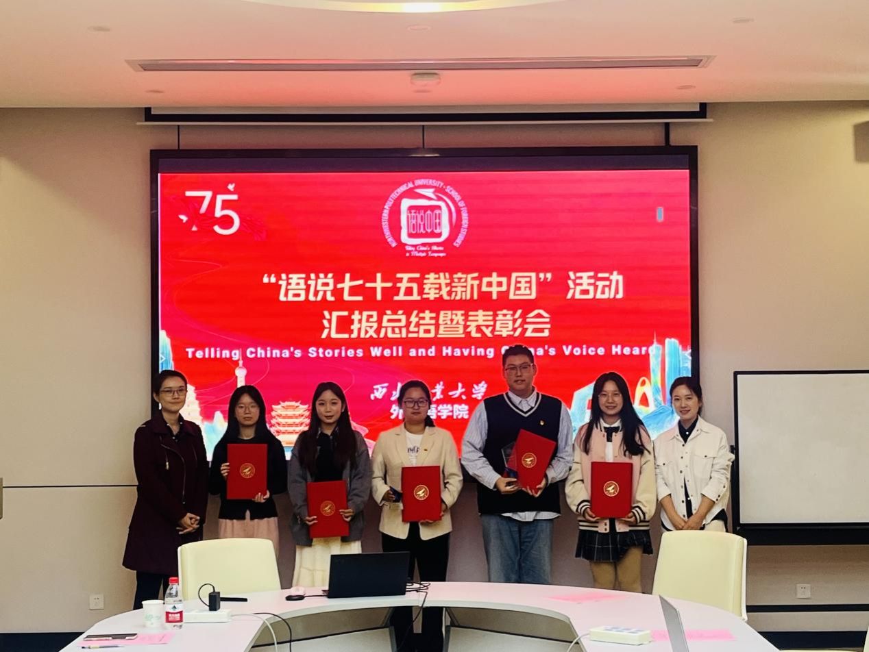 随后,按照抽签顺序,6组同学按照依次上台进行汇报展示。各组同学以中华人民共和国七十五周年的光辉历程为素材,以故事为线索,熟练运用英、德2种语言,深刻阐释“四个自信”的丰富内涵和重大意义。