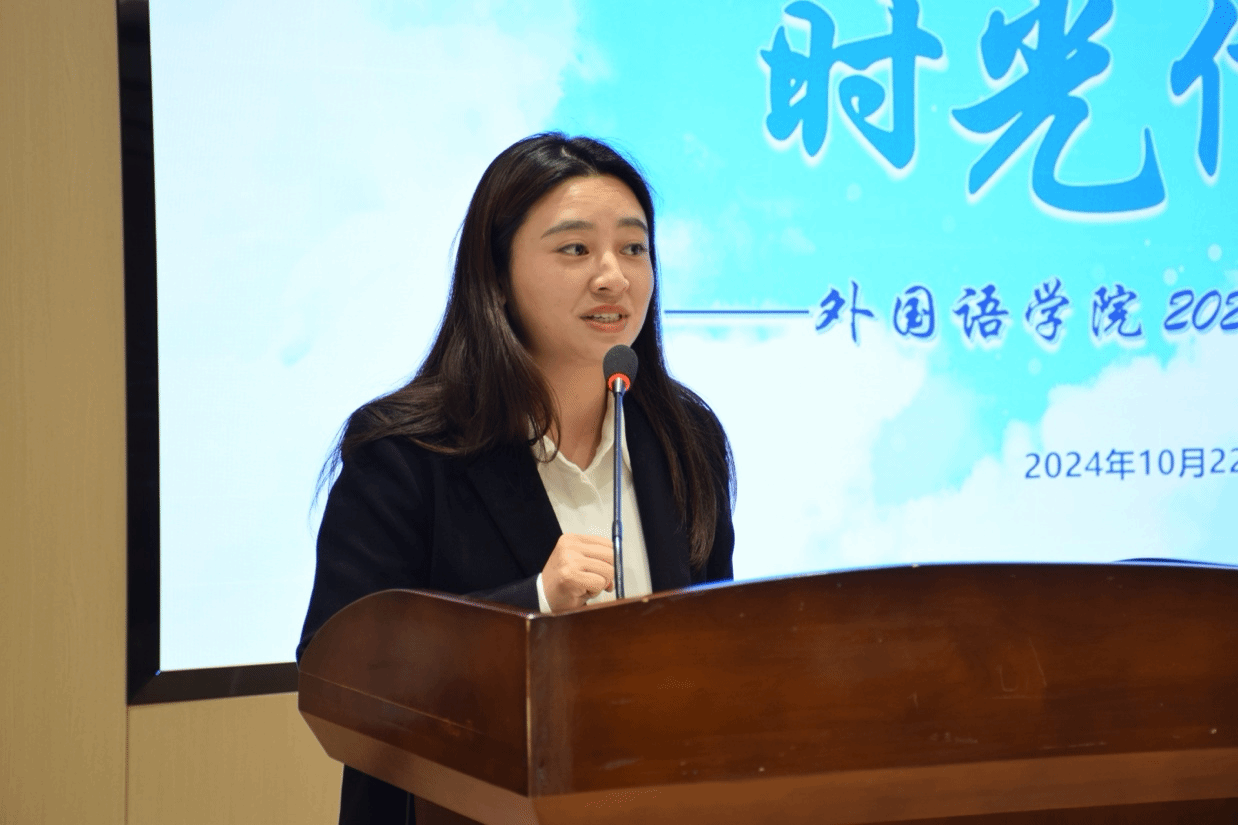 吴蕊霖首先介绍了“青春绽放 时光信箱”主题活动的开展意义和主要内容。她表示,每年9月同学们撰写一封信致一年后的自己,规划未来一年在专业技能、学科竞赛、创新创业、社会实践和公益服务等方面的目标、规划以及举措等,将信件存入时光信箱,学年结束后,每名同学开启信封并对照汇报个人一年来的成长收获。