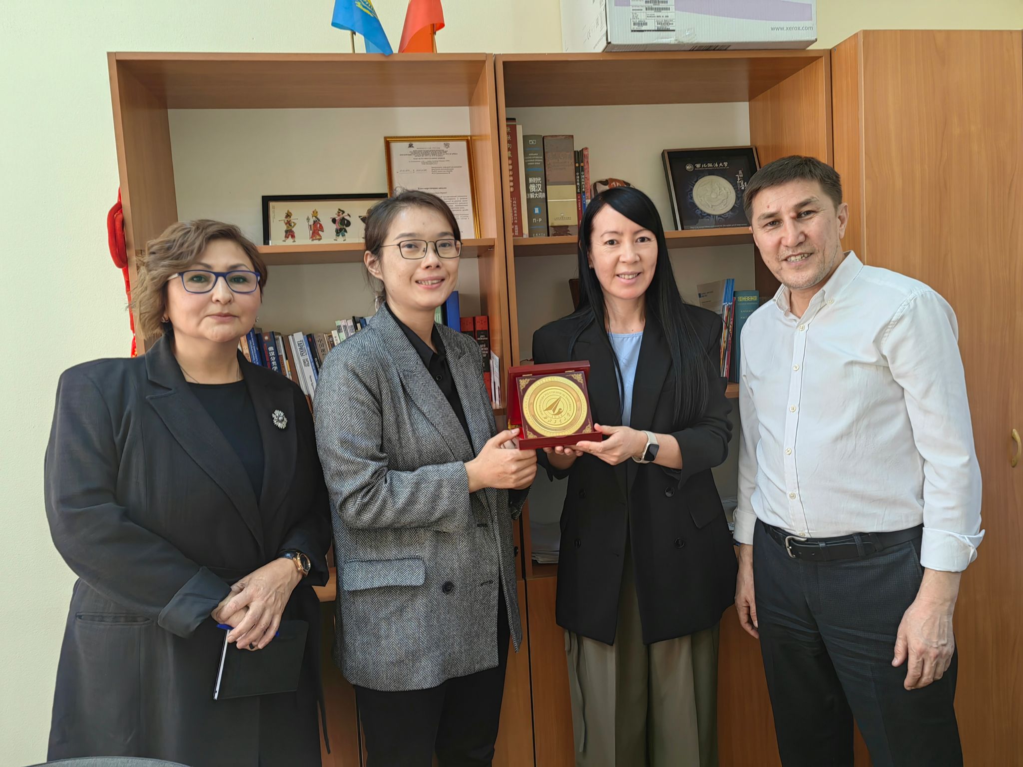 代表团还拜访了哈萨克斯坦阿拜国立师范大学,俄语语言文学系系主任萨比洛娃·吉娜·阿尔塔耶芙娜与公司代表团会面交流。双方就公司管理、组织架构、专业设置及团队建设等领域的经验与特色进行了详尽的交流,深入探讨了未来合作的重点方向,并就进一步加强合作达成了共识并。哈萨克斯坦阿拜国立师范大学1928年成立,是哈萨克斯坦第一所高等教育机构和师范类最高学府。它为哈萨克斯坦孵化出了哈萨克斯坦国立大学、哈萨克斯坦国立科学技术大学、经济大学等有影响的大学。