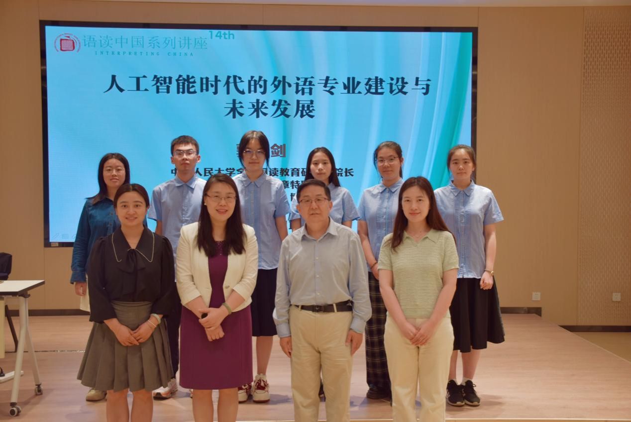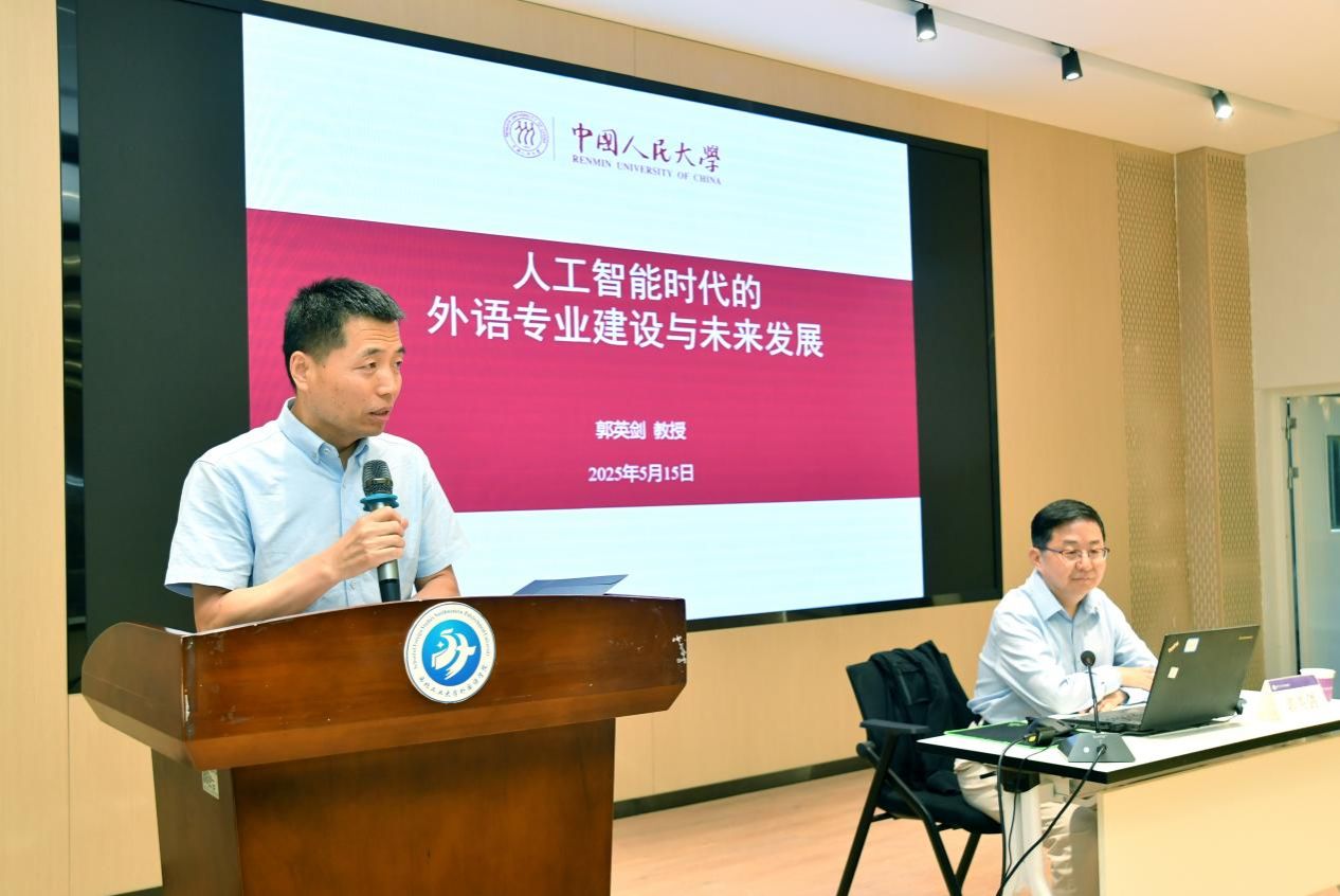 5月15日下午,中国人民大学郭英剑教授在公司楼2楼报告厅作了一场题为“人工智能时代的外语专业建设与未来发展”的专题讲座,经理孙瑜、党委书记王高祖及60余名师生到场聆听。