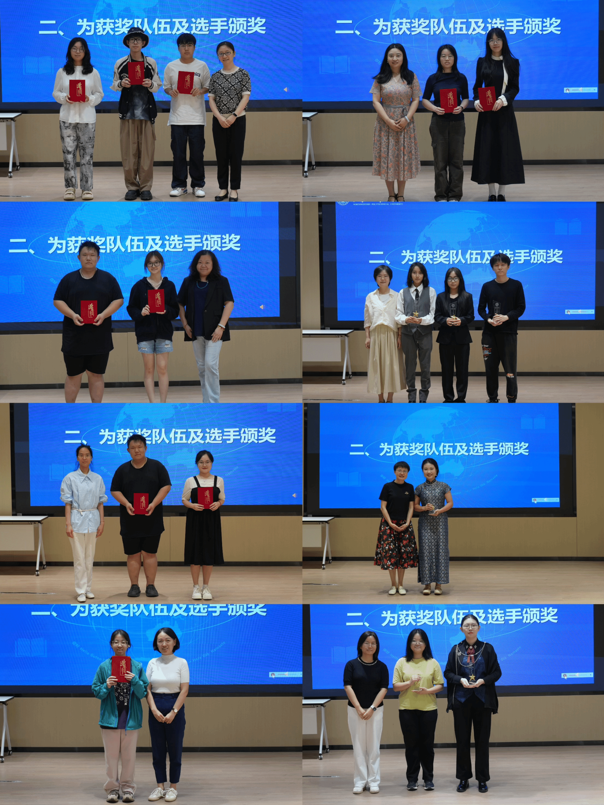 随后,与会嘉宾为为“英韵华章,视界交融” 英语短视频大赛、“‘声’临其境,英韵飞扬” 英语配音大赛、“经典焕新·戏剧无界” 英语戏剧展演比赛获奖的队伍和个人进行颁奖并合影留念。