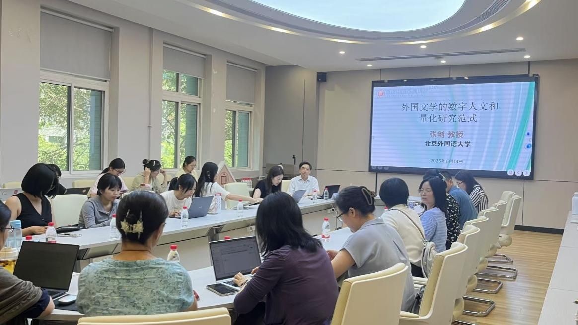 6月13日下午,北京外国语大学二级教授、博士生导师张剑教授应邀到公司,为师生带来一场主题为《外国文学的数字人文和定量研究范式》的讲座。本次讲座由经理孙瑜主持,党委书记王高祖及40余位师生参加。