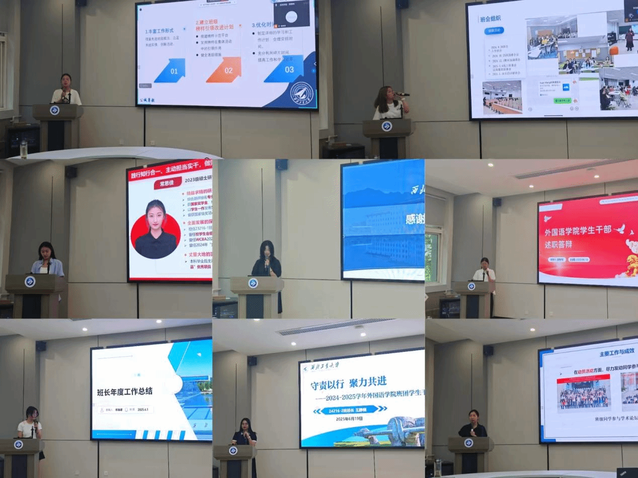 答辩现场,员工干部以PPT展示与口头汇报相结合的方式,全面回顾本学年工作,并从班级学风建设、团日活动创新、心理健康关怀、个人成长等方面用详实的案例和数据,展现了“服务同学、助力班级”的管理成效。汇报中,员工干部们既亮出“成绩单”,也直面问题,在自我剖析中展现责任意识。通过总结、反思、规划,不仅梳理了个人工作,也为各年级提供了交流平台。
