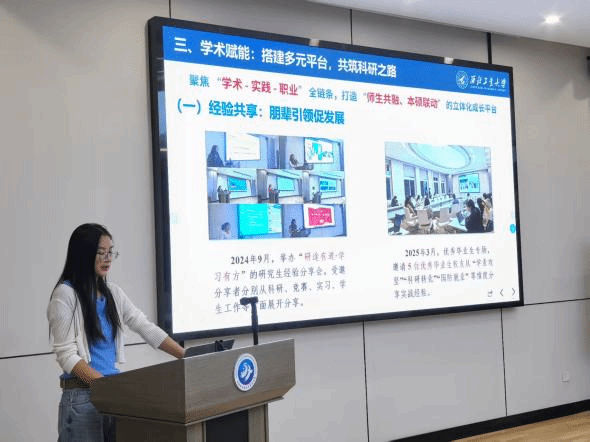 游戏环节结束后,院研究生会主席团成员李晨菲为大家进行了招新宣讲。她全面介绍了院研究生会的各部门职能、工作风采以及招新要求。她鼓励新生积极参加,让大家在组织活动、协调资源的过程中,锻炼沟通能力、策划能力与团队协作能力。