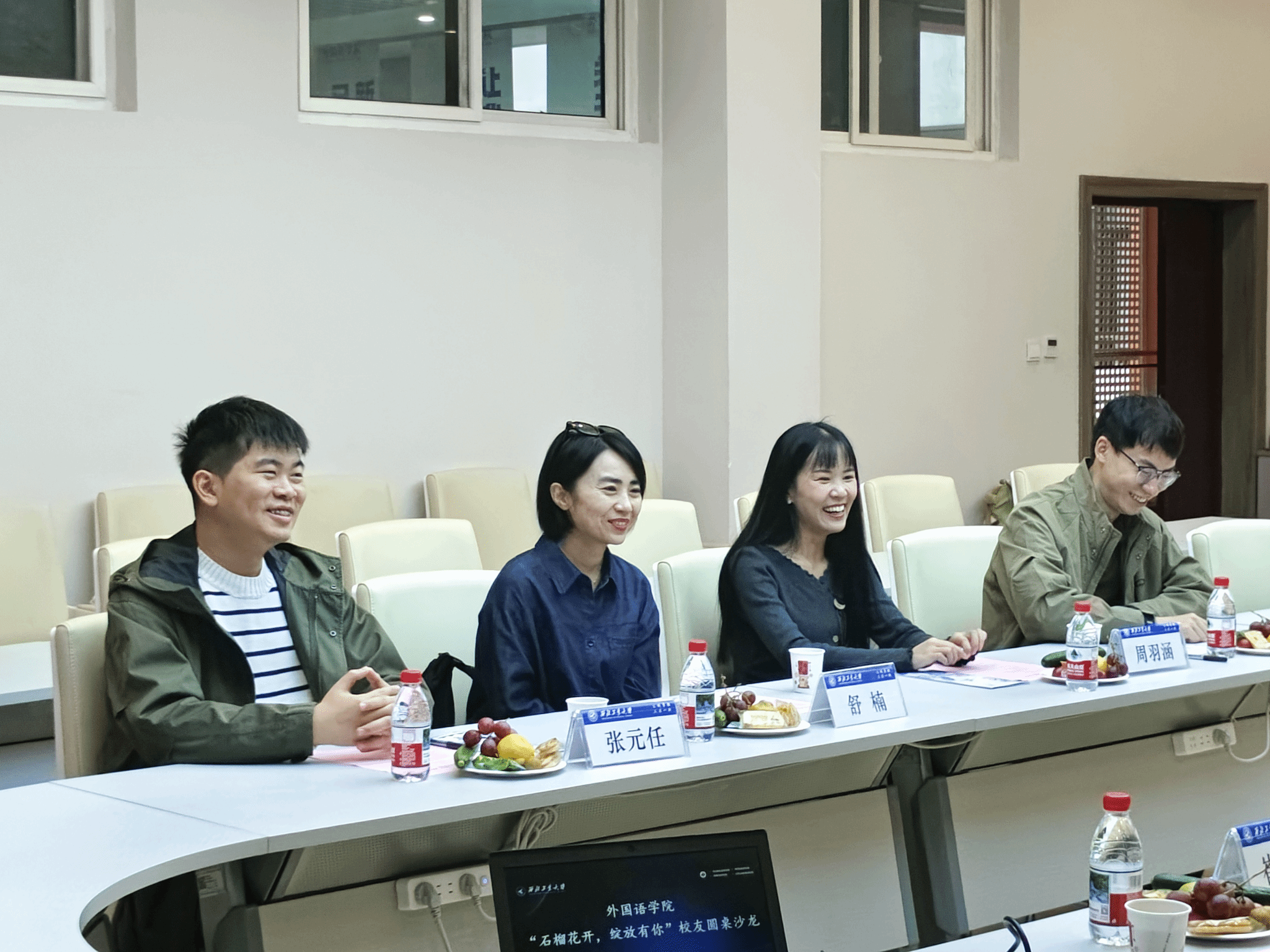 在自由交流阶段,各位员工分享了各自离校后的职业发展历程与人生感悟,并表示在校期间的学习为后续在社会中的打拼积淀了力量。