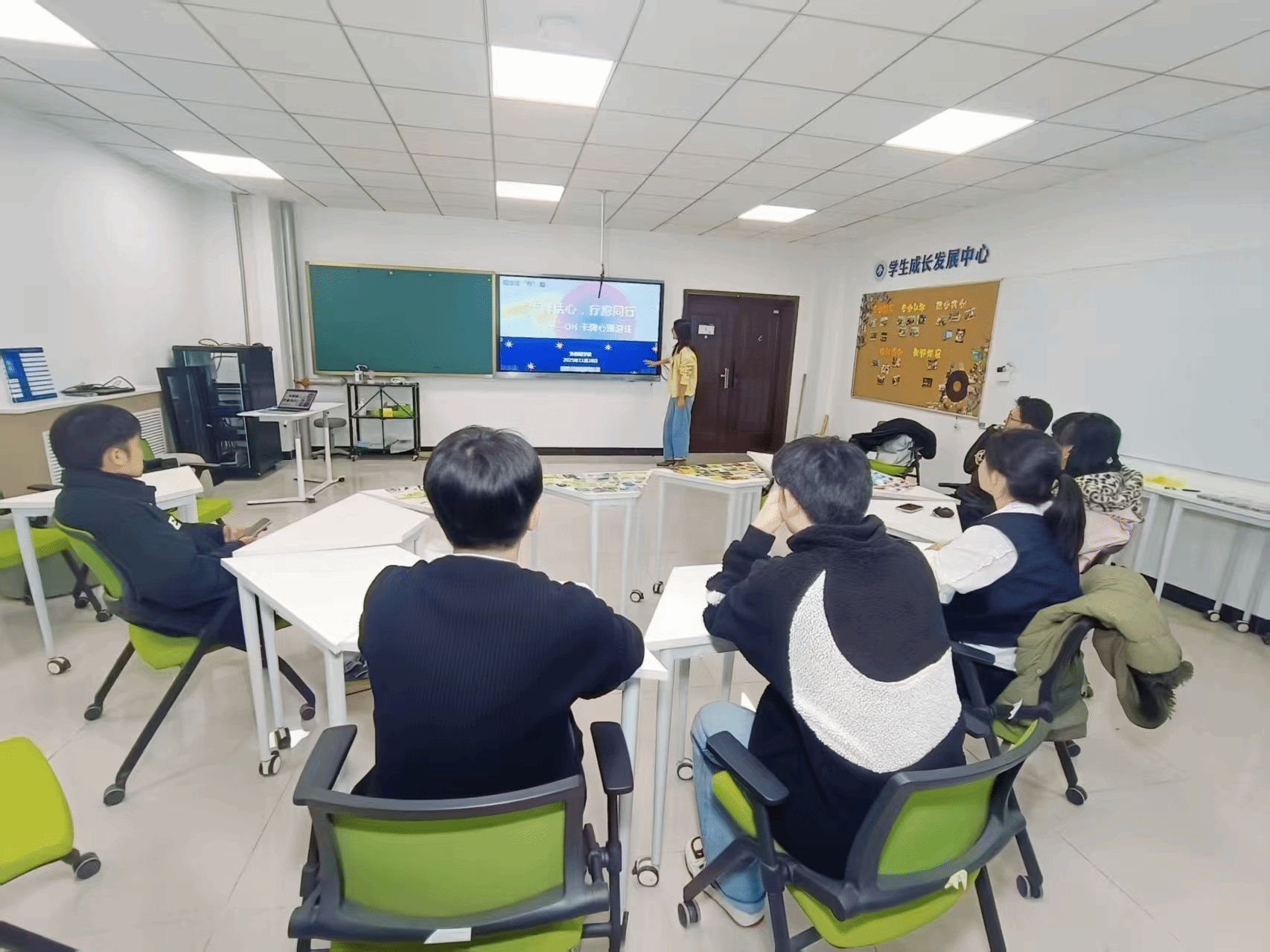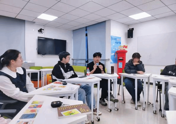 卡牌开场,以意象开启心的对话。活动伊始,“自我介绍”环节以卡牌图像为媒介。同学们根据抽取的图案,结合自身近期状态进行介绍,通过图像的象征意义表达当下的情绪与思考。或迷茫、或期待、或携带力量的分享,让现场迅速建立起信任与连接,氛围温暖而真诚。