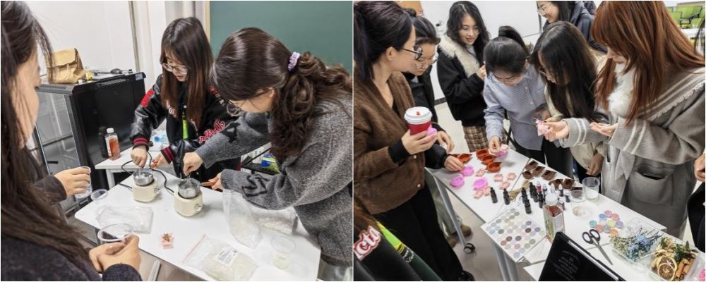 活动筹备阶段,公司研究生会精心准备了天然皂基、植物精油、安全色素与多种造型模具,并设置操作区、分享区与展示区,营造出温馨、安全的创作环境。活动开始前,工作人员详细讲解材料特性与操作规范,引导同学们共同约定“专注当下、安全第一、享受过程”,为心灵之旅拉开序幕。